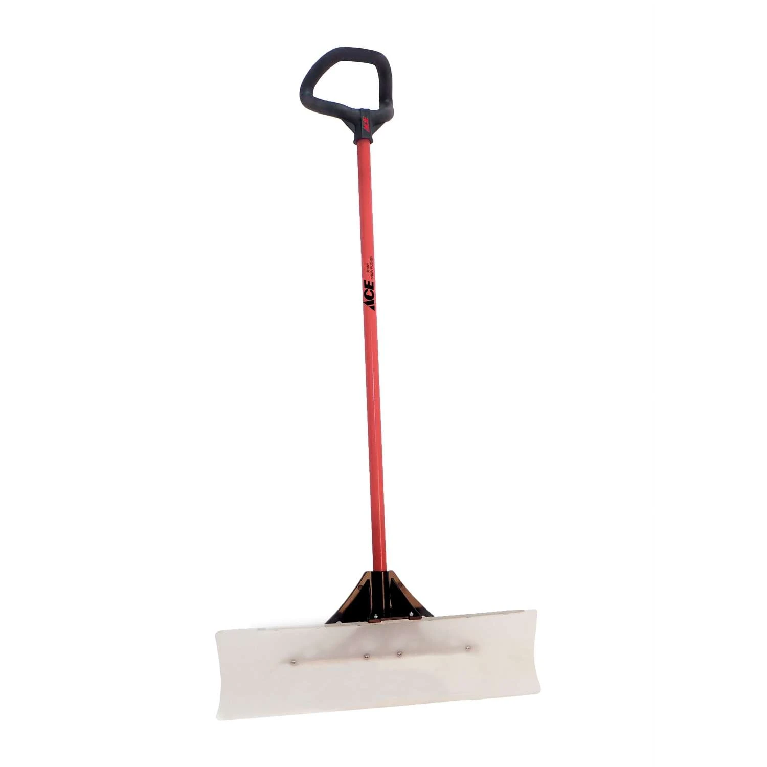 Ace is introducing it own 30 in. wide UHMW polyethlene blade with a strong fiberglass pole and dual grip handle for strenght and ease. This pusher is and easy click together assembly, ideal for clearing medium to high accumulations of snow and virtually indestructible. This commercial grade pusher can clear driveways and walkways in just a few passes. The UHMW polyethylene blade design provides strength without damaging whatever surface you’re clearing. Dual grip handle Commercial grade Durable Ergonomic