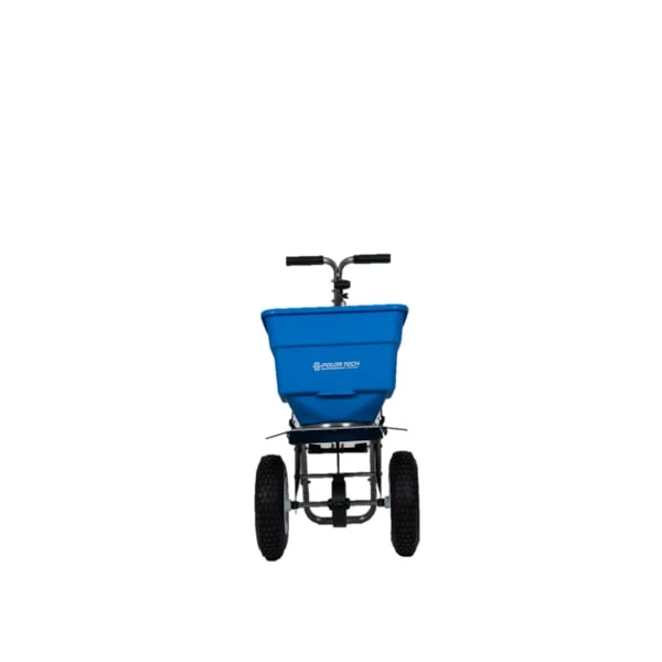 100Lb Commercial Stainless Steel Ice Melt Spreader. 13″ Pneumatic tires. Adjustable handle height.