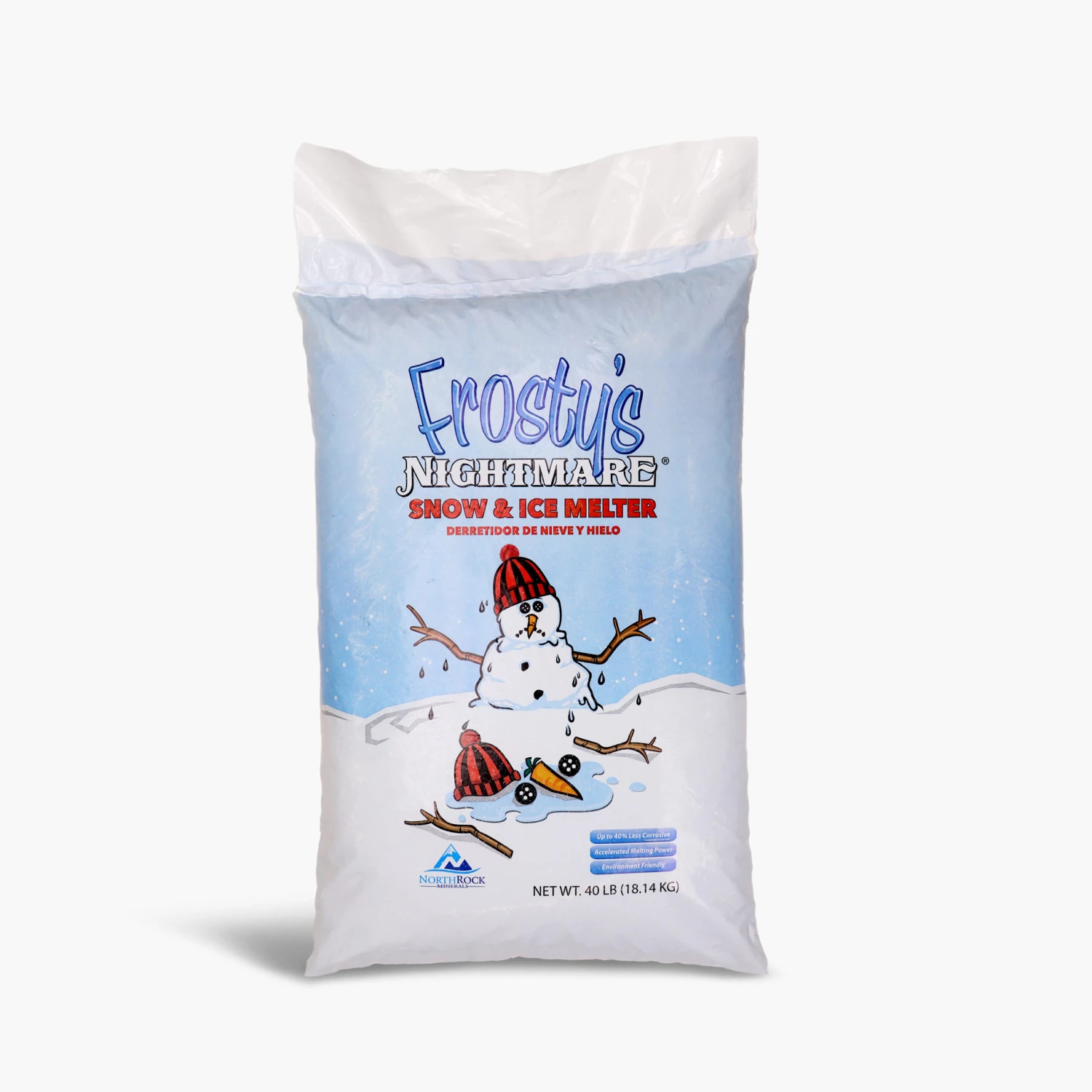 THE NICER DE-ICER. The FN40 Frosty’s Nightmare® Snow & Ice Melter is comprised of specifically sized ice melt crystals designed to quickly de-ice pavements, driveways, and other road surfaces, making them much safer and easier to traverse. Frequent use throughout snowfall periods prevents ice from forming on ground surfaces, too. Can be conveniently dispensed directly out of the bag or into a handheld or wheeled salt spreader.