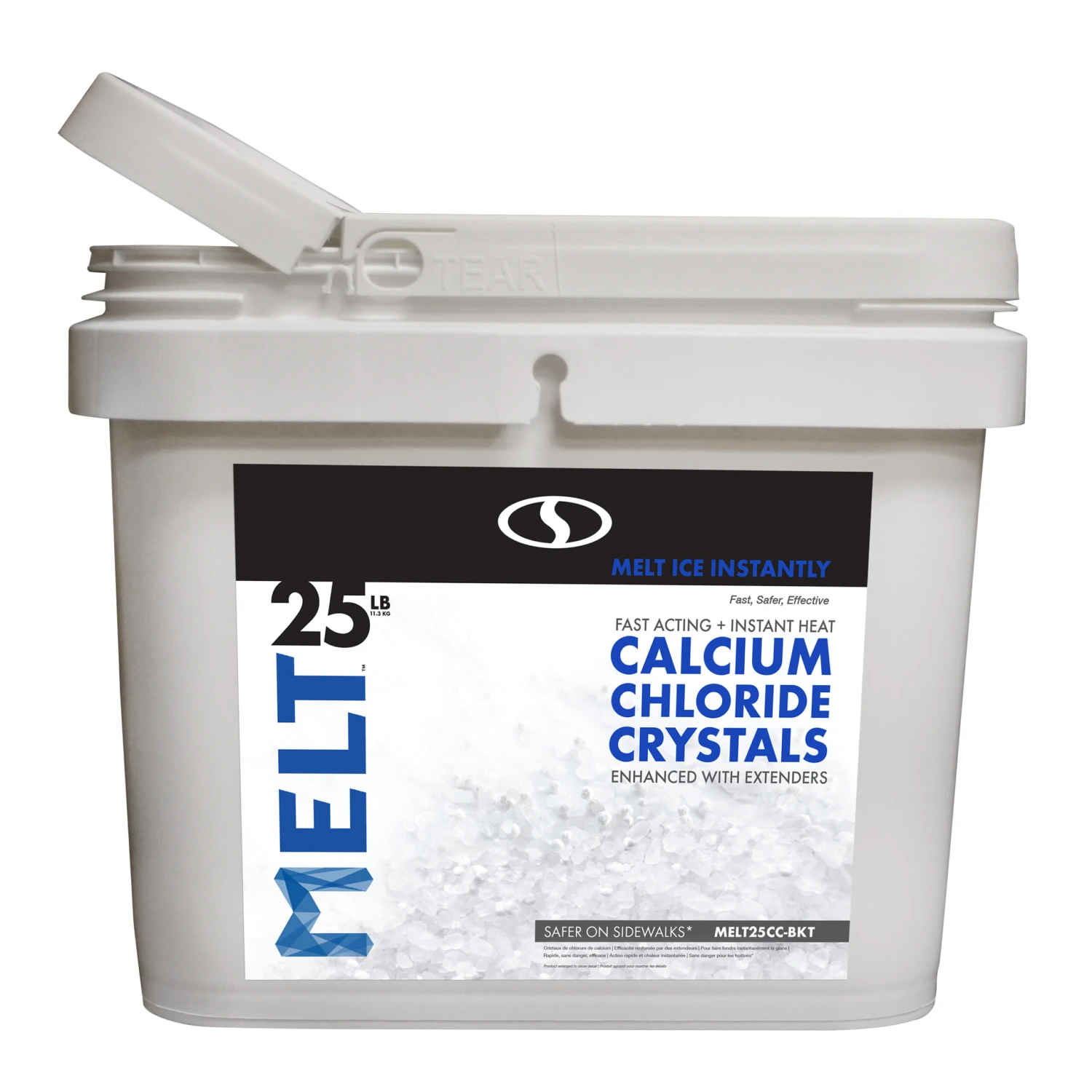 MELTS DOWN TO -25°: MELT calcium chloride crystals effectively melt ice and snow on contact, even at temperatures as low as -25°F.