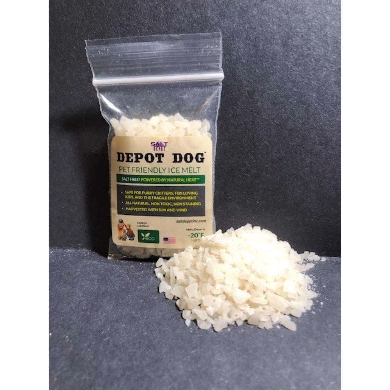 Depot Dog is safe for contact with animals, vegetation and cured concrete when used as directed. It is an all-natural product, harvested with sun and wind. Gentle on paws and fingers, Salt Depot’s proprietary Natural Heat activates the melting process to -20° F / -26° C. Salt free, all natural, non-toxic, non-staining Safer for furry critters, fun-loving kids and the fragile environment Easy application