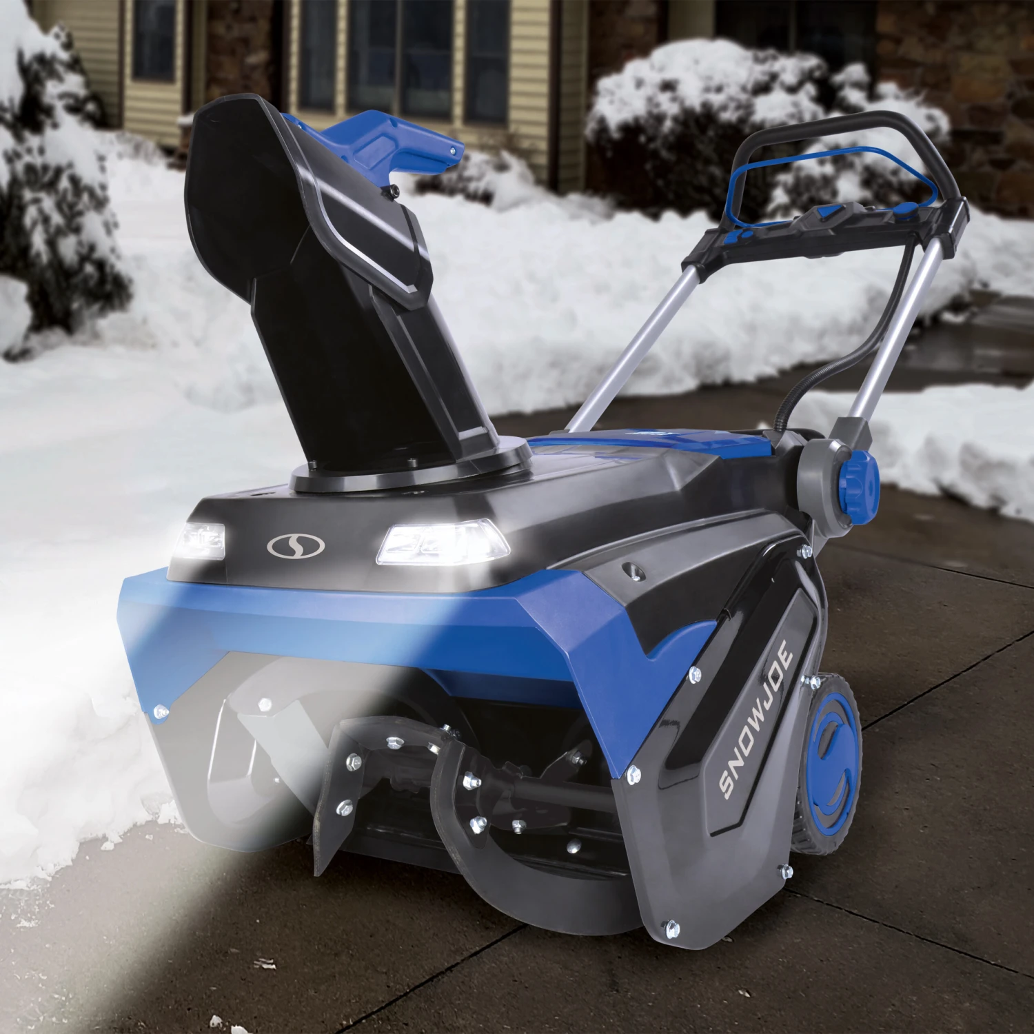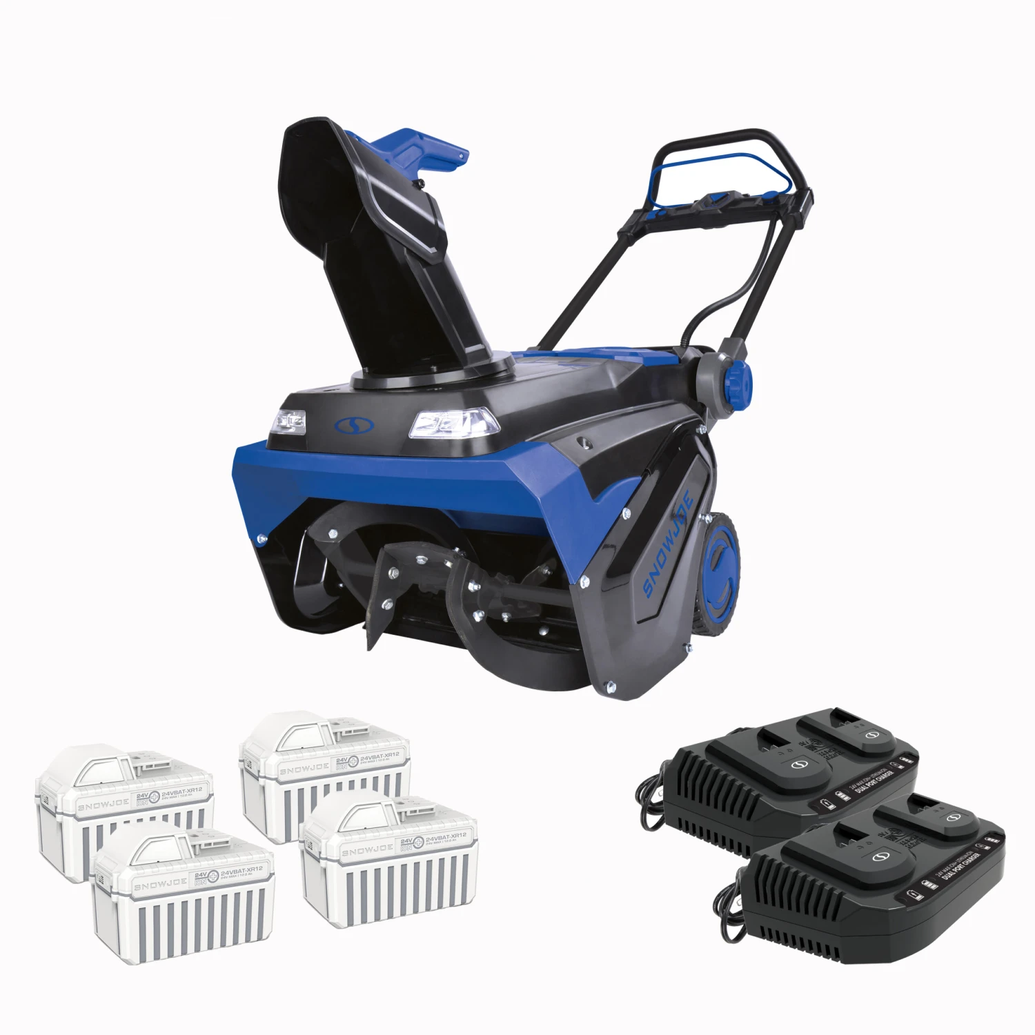 WAGE WAR ON WINTER. The latest revolution in snow-clearing technology meets the 24V* IONMAX Battery System with the 21-inch 96V* Max Cordless Snow Blower from SNOW JOE®. Driven by Snow Joe’s exclusive 24-Volt* battery series, SNOW JOE features four high-capacity 24-volt*, 12.0 Ah lithium-ion batteries that deliver up to 96 volts* of max power + performance, with zero carbon emissions for cleaner air. Ideal for mid-to-large-sized driveways and walkways, SNOW JOE boasts a powerful 2800-watt brushless motor and 2-blade, temp-resistant auger that quickly clears a 21-inch wide by 12-inch deep path in a single pass.