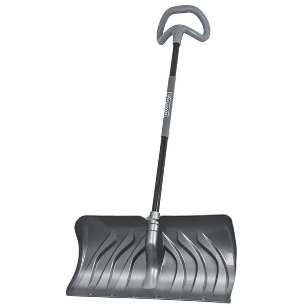 This Vulcan snow pusher has a metal wear strip with a steel handle with ERGO grip The blades are made of heavyduty polypropylene for added strength